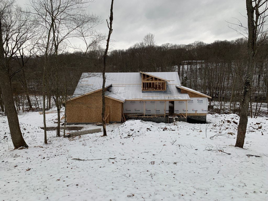 It happened! It finally happened! The right trusses were delivered, installed, and covered with shingles. We have a real roof—hallelujah! Holy shit! Where’s the Tylenol?!