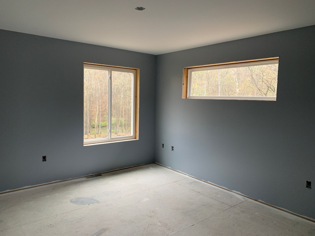 So we opted to spend extra to have the builder paint for us. We kept it simple and only went with four colors total, which I’m telling myself kept the cost down a little. But the thought of cutting in and rolling paint across nearly 2,500 square feet that include a cathedral living room-kitchen ceiling, a 16′ office ceiling, and a two-story stairwell… that’s a hard pass. Did I mention the kitchen and dining room required a THIRD coat? Triple nope.