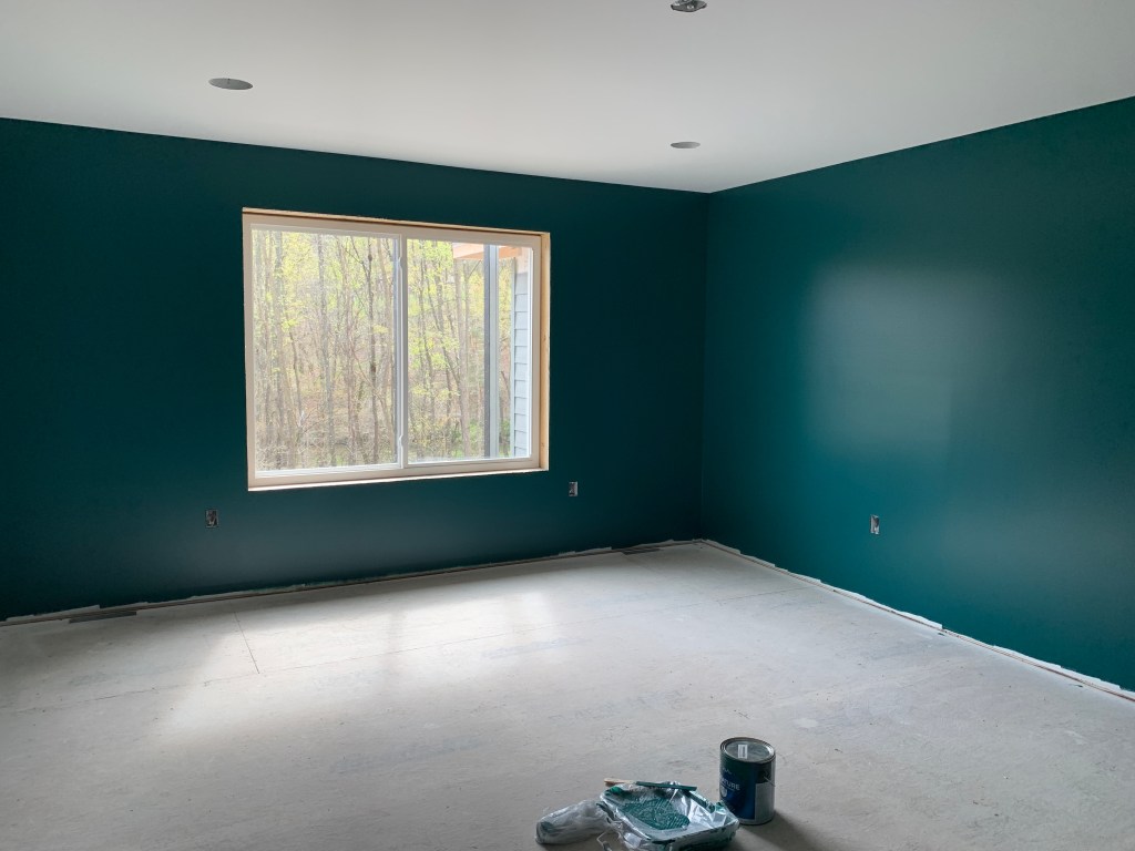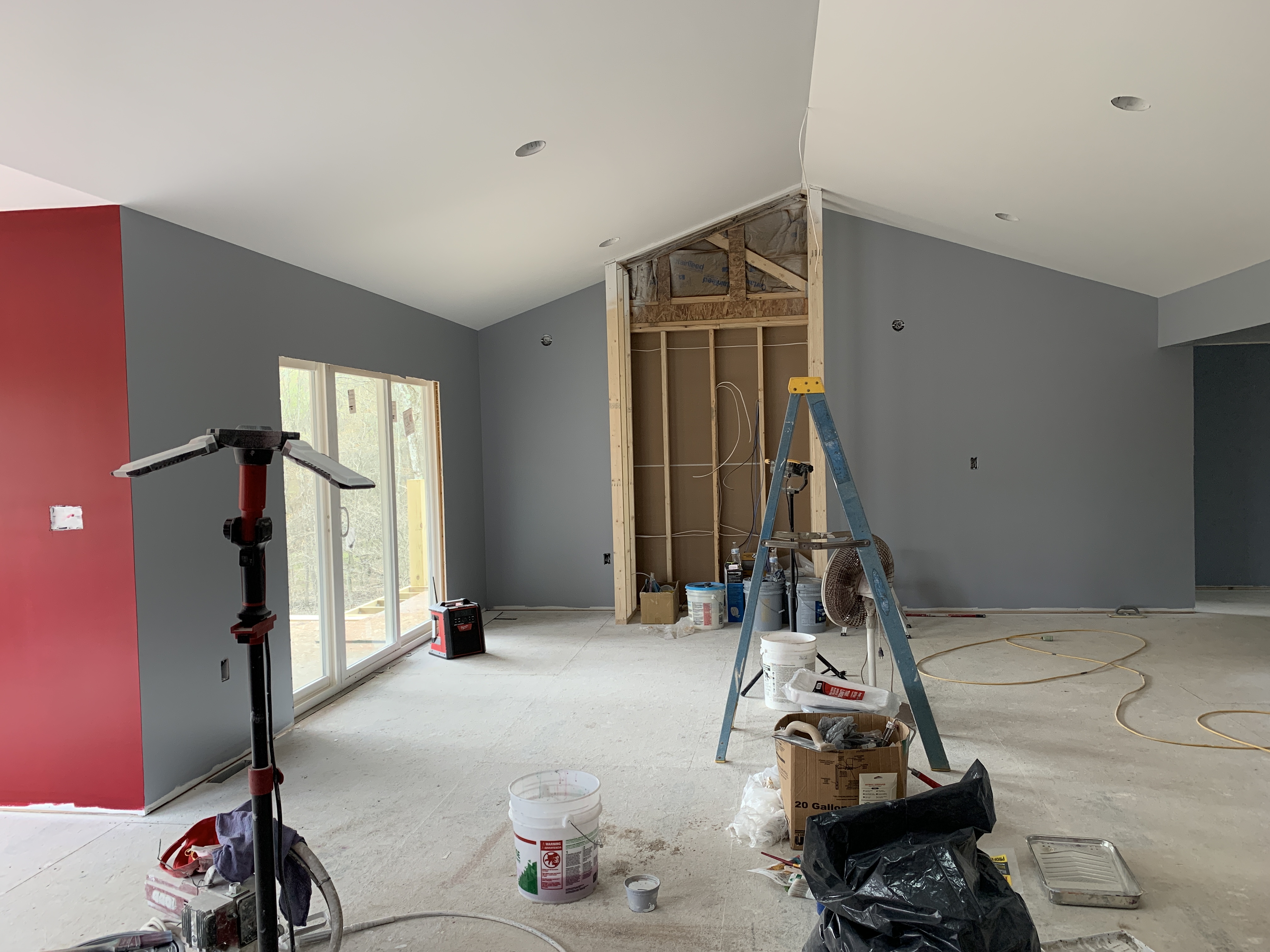 Apparently, we did something unusual in that we had our builder paint for us. Typically, builders come in and spray everything flat white (see my previous paragraph about our dogs for why this was the worst possible option for us). Then the homeowners roll on whatever they want later. We had a very, VERY brief conversation about painting the walls ourselves whereupon we remembered that we both hate painting with the fire of a thousand suns. We actually needed a multi-year break between painting rooms in our last house.