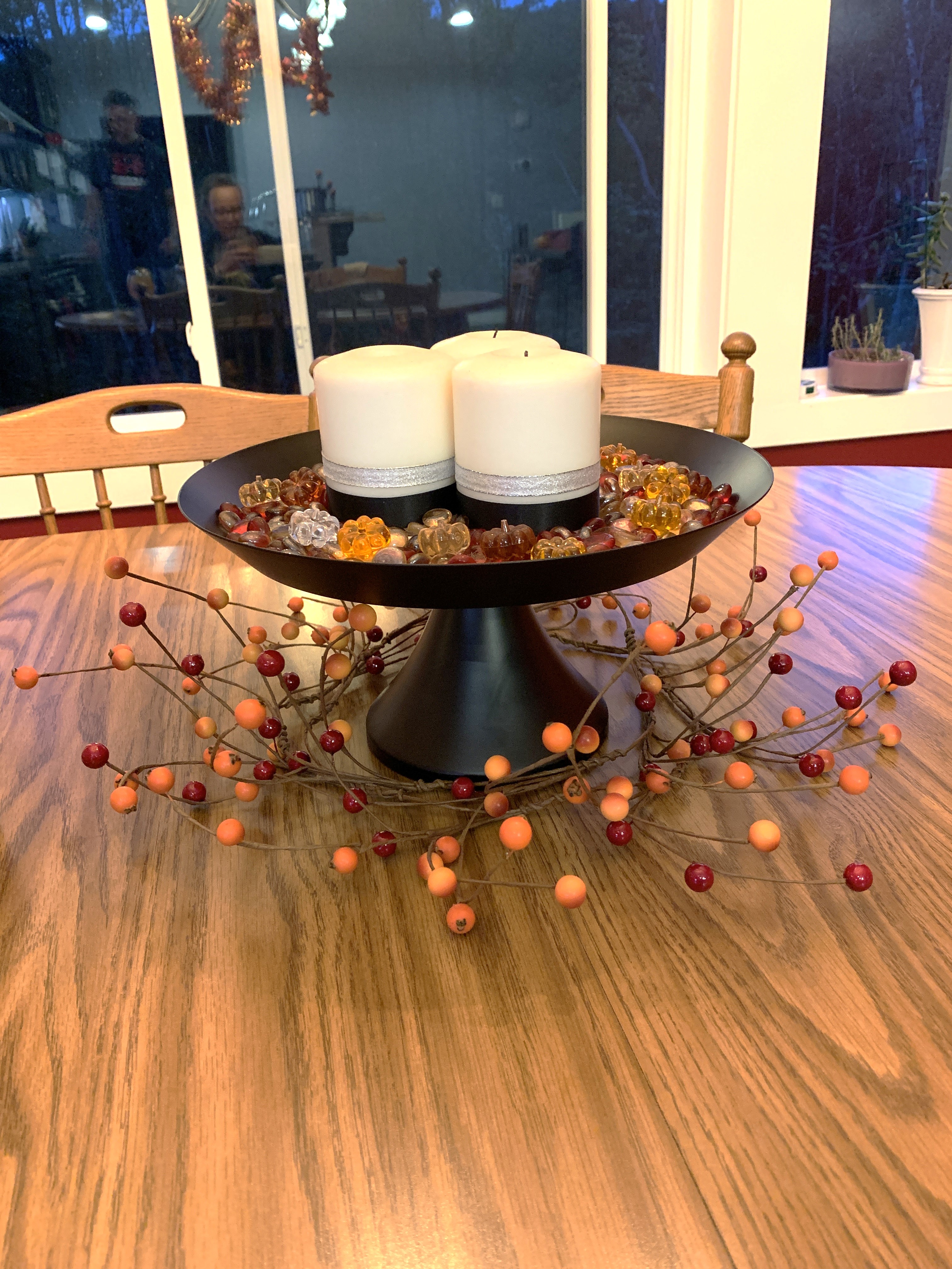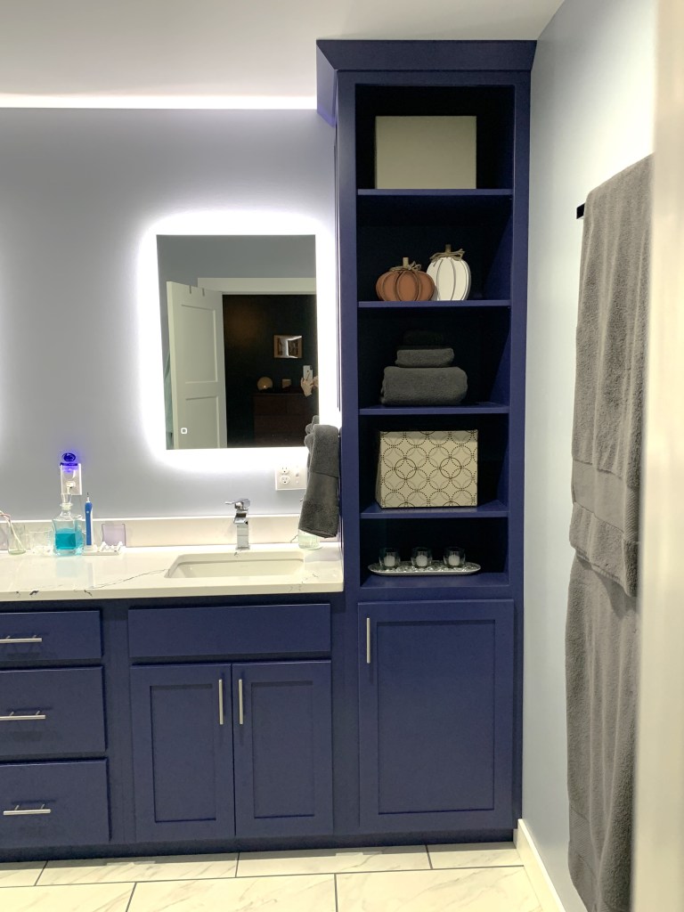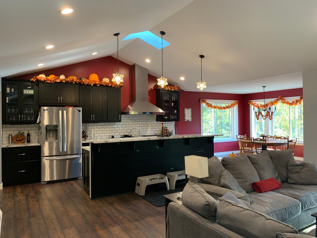 In looking at these pics, it’s not super obvious just how much of this stuff is for fall/Halloween, but there is a pumpkin, skull, leaf, or fall candle on every surface in the living room, the kitchen, and the dining room. lol Next year I think I’m going to lean harder into garland and maybe snag some fall blankets and pillows because 1) it’s fun, 2) it’s easy, and 3) I have already maxed out my shelf and table spaces. Oopsie.