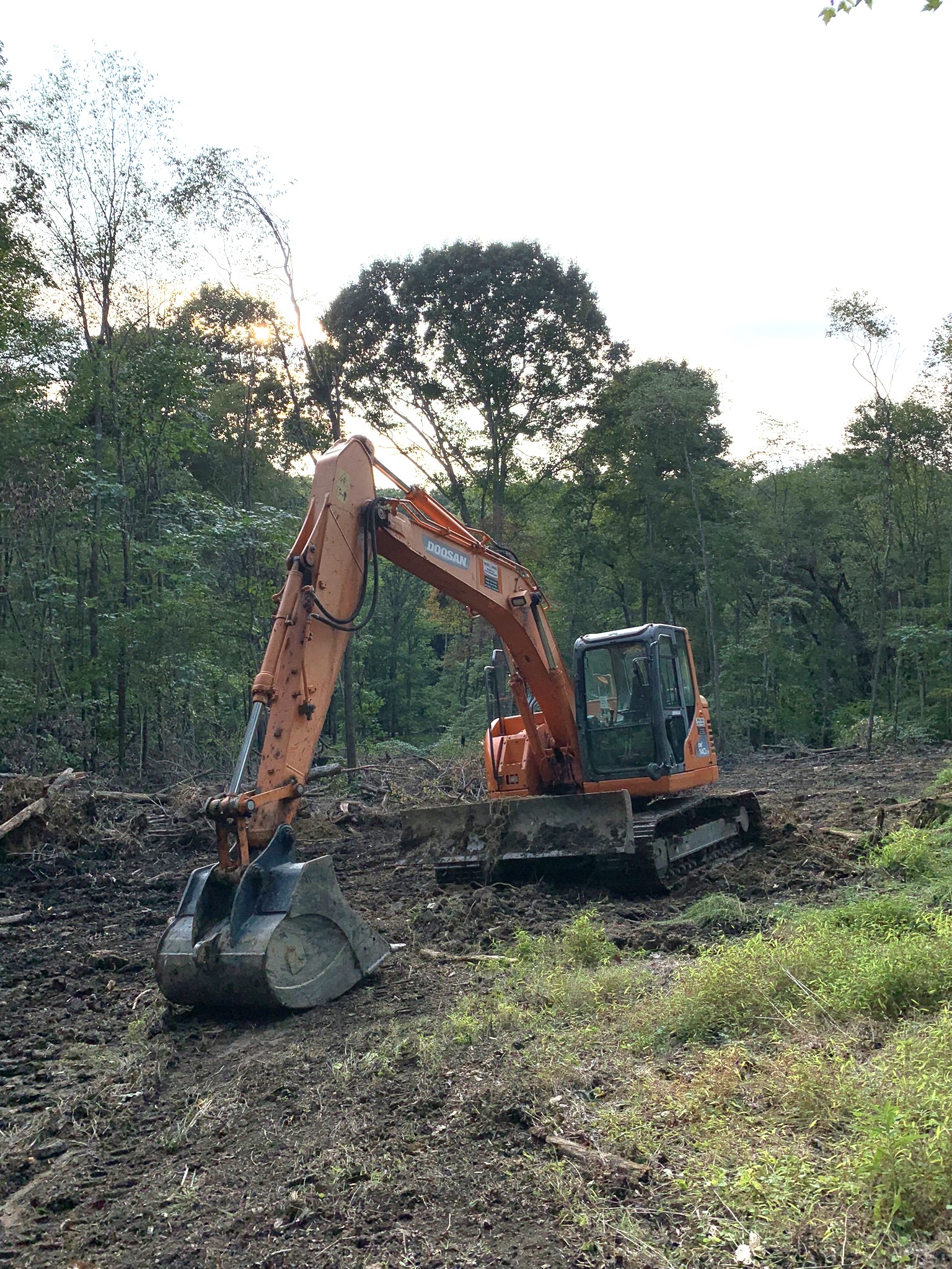 Also pictured above: We got the beginnings of our driveway added today in the form of at least two dump truckfuls of crushed stone. It’s mostly to prevent deep(er) ruts from the even bigger equipment that will be rolling in, but it’ll serve as a base for gravel later. Selfishly, I like that it makes it easier to walk up and down the hill without sliding around in the mud.